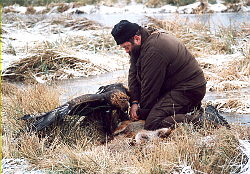 14.12.02 erfahren. Baujagd mit den Steinadlern Artur und Mädi in Letzlingen (Sachsen-Anhalt). Wir folgten