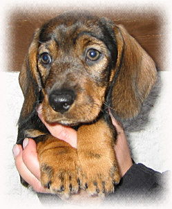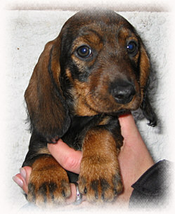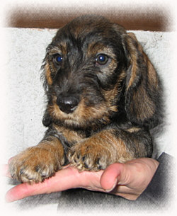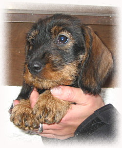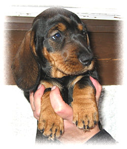 Bo steht im ständigen Jagdgebrauch. Die Welpen sind 8 Wochen jung.