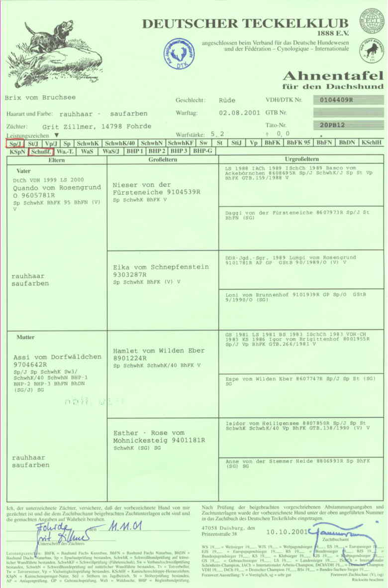 Sp/J (Ia) SchwhK (Ia) Vp (Ia) SchwhK/40 (IIa) SchwhN StiJ BhFN BhDN Int.-Bau/Pl (I) Formwert: V2 VDH-CAC res. |
