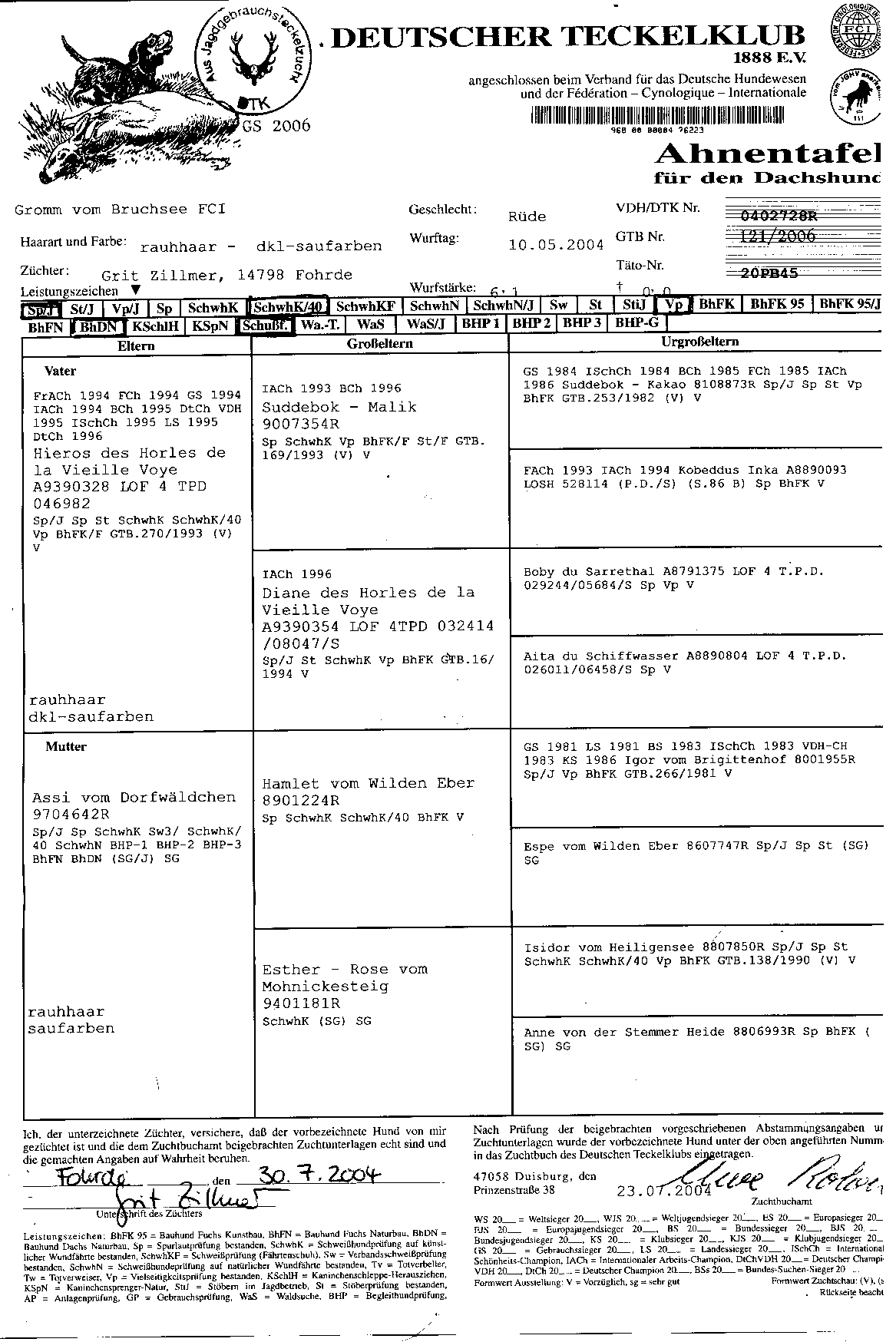 IACh 07 GS 06 Gromm vom Bruchsee FCI |