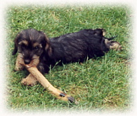 Emil vom Bruchsee Emil lebt nun in Döberitz und soll jagdlich geprüft werden. Er sieht seinem Vater sehr ähnlich, trägt aber ein dunkleres (fast schwarz) Haarkleid. |