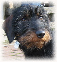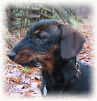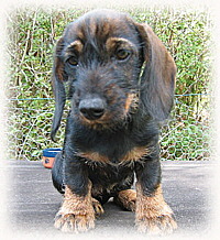 Elli vom Bruchsee Sp/J II. Elli lebt und jagt an der Ostsee. Sie verteidigt schon jetzt ihre Beute, sitz auf der Sau und lässt keinen Fremden ran. Sie wird noch viel Wild in ihrem kleinen Teckelleben sehen, ist aber auch der Sonnenschein im normalen Alltag. |
