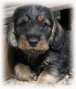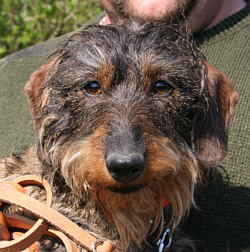 Nina vom Bruchsee Sp I., SchwhK II. Nina zieht ins östliche Brandenburg zu einem passionierten Jäger mit Familie. Basra aus dem B-Wurf ist in dieser Familie groß geworden und erfolgreicher Jagdteckel gewesen. |